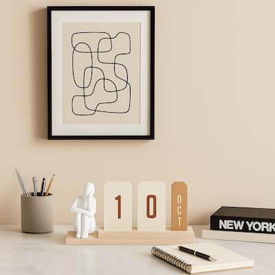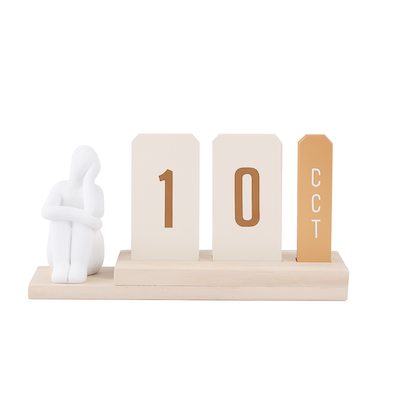 Calendario de base de madera con escultura decorativa de 28x8x11cm.