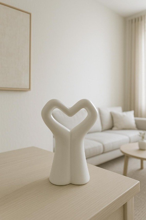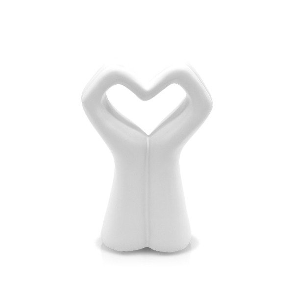 Moderna escultura de corazón en cerámica blanca de 14x8x23cm.